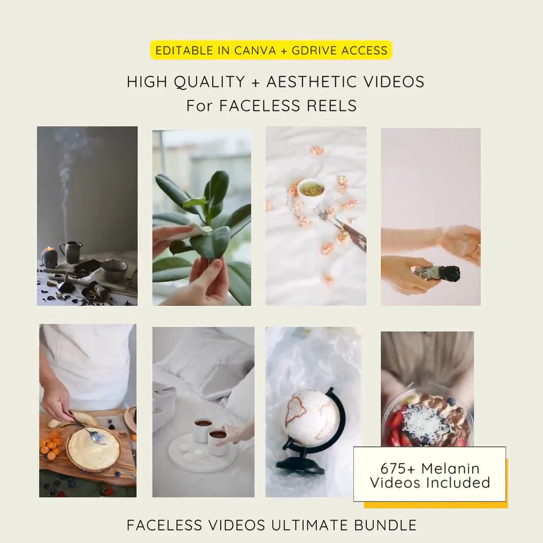Your faceless social media just got a whole lot easier and more aesthetically pleasing! Transform your social media game with over 1750+ aesthetic videos to curate your own faceless reels