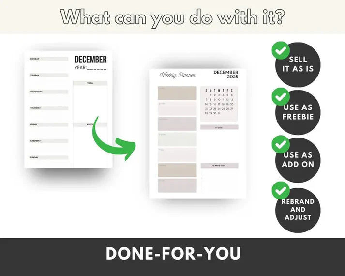 Rebrand it under your own name, customize the design, or use it to build your own planner product.