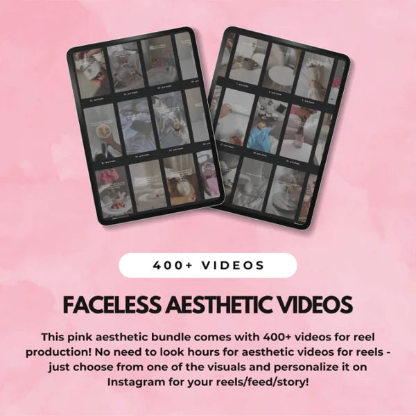 This Pink Aesthetic Mega Bundle comes with with over 400 aesthetic videos with pre-loaded text, which allows you to transform your social media game and to curate your own content.