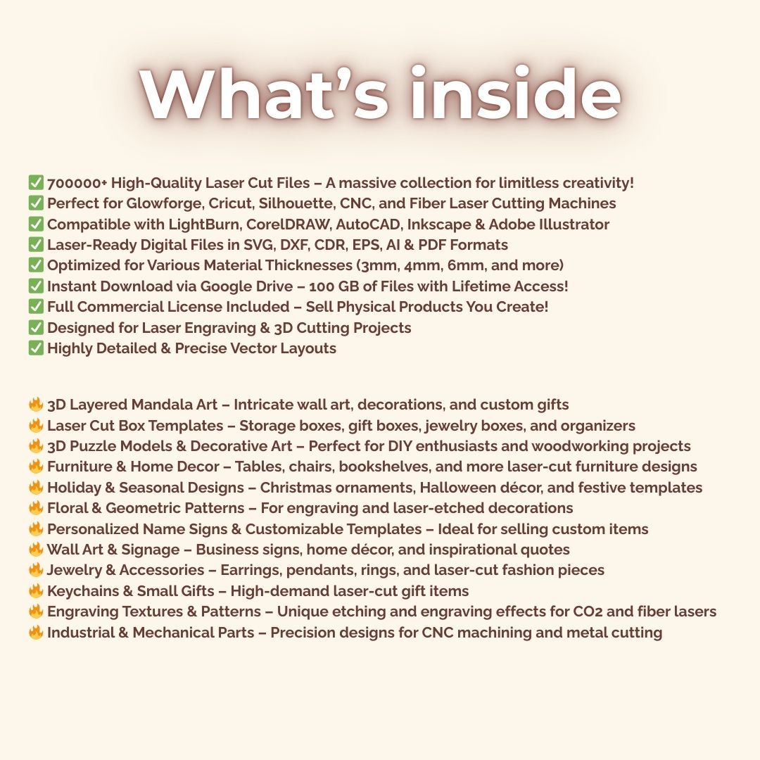 ✔️ Ready-to-Use – Perfect for cutting & engraving (wood, acrylic, metal & more).